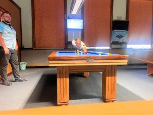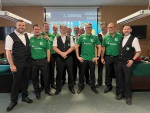 Am Samstag in Leipzig, zunächst das richtungsweisende Duell gegen den Falkenberger SV. Beiden Mannschaften war klar, dass es ein vier Punkte Spiel war. In einem spannenden und gutklassigen Match siegten die Leipziger mit 1733:1729 Points. Jacob Farnach zu Beginn schön geduldig und durch eine Leistungssteigerung in Halbzeit zwei stand die erhoffte 300 schließlich am Board. Jens Ambrock an zwei mit 40 Stoß hui und leider 60 Stoß pfui was nur für 271 reichte. Knappe Führung für Falkenberg durch die Starter Torsten Nickel (285) und Tobias Kufeld (296). An Drei hatten beide Sportfreunde zu kämpfen. Reinhard Noack am Ende mit 257, was ihn sicher nicht begeistert haben wird und Stefan Kubisch mit 252. David Ewald kam gar nicht zum Laufen und landete am Ende bei nur 241. Da Andre Meseke starke 297 erreichte, neigte sich die Waage stark zu Gunsten von Falkenberg. Für unser Schlussduo war nun ein dickes „Brett“ zu bohren doch Robert Lehmann die „Maschine “ zeigte seine außerordentlich gute Form und packte 337 Holz hin, inklusive Führungswechsel. Tja und Rocco Drese musste sich nun mit dem amtierenden Deutschen Meister Sven Petzke messen. Da bedeuten 12 Holz plus nicht wirklich viel. Richtig starkes Billard auf beiden Seiten und Sven Petzke seine starke 335 reichte nicht, da Rocco mental und spielerisch auf Augenhöhe agierte und saustarke 327 hin packte und somit 4 Holz für Leipzig über die Ziellinie brachte.
