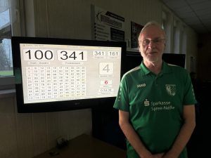 Am 7. Spieltag empfang der FSV Spremberg zuhause den Chemnitzer BC und es war klar, in Spremberg musste nach 4 Niederlagen in Folge und insgesamt nur zwei Punkten endlich wieder ein Sieg her und dass gegen die seit 5 Spielen ungeschlagenen Chemnitzer, die ihre Siegesserie weiter ausbauen wollten. Zum Anfang lief auch alles nach Plan der Gäste, wo Till Fritzsche gleich mal mit 305 Punkten ins Spiel ging. Auf Seiten der Heimmannschaft lief es in Durchgang eins noch nicht so wie geplant, denn Uwe May kam nicht so gut in die Partie und brachte lediglich 264 ans Bord. In der zweiten Runde spielte dann auf Seiten der Spremberger Thomas ,,Thomasino“ Hähne und machte seine erste 300er Nummer (301) seit 26 Jahren (damals noch für Dresden Reick). Zeitgleich spielte auf der Chemnitzer Seite Marcus Marsch und erzielte starke 345 Punkte und konnte damit seinem Spremberger Gegenspieler sogar 44 Holz abnehmen. In der nächsten Paarung konnte Leon Enge mit 313 Punkten den Abstand zu den Chemnitzern gegen Mario Gehrke 275 Punkte, wieder ein bisschen verringern. In Runde Nummer vier konnte Sven Hölzel auf Seiten der Chemnitzer mit glatten 300 gegen den alten Fuchs Günter Wille (278) schon einen komfortablen Vorsprung für die letzten beiden Spieler herausholen. Nun hieß es für die letzten beiden Spremberger, alles in die Waagschale werfen, um doch noch das Spiel zu ihren Gunsten zu entscheiden. Somit spielten Hardy Schneider 316 und Pierre Szakasits 303 als Schlussduo 619 Punkte und konnten die 68 Punkte Rückstand gegen Felix Schrobback 291 und Christoph Winkler 246 doch noch aufholen. Christoph verspielt den Sieg und Spremberg gewinnt etwas glücklich mit 1776:1762.