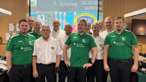 Am Wochenende standen die Derbys zwischen Chemie Tschernitz und dem FSV Spremberg auf dem Programm. Am Samstag hatte der aktuelle Vizemeister das Heimrecht und staunte nicht schlecht, dass die Gäste, Thomas Hähne und Uwe May an Bord hatten. Damit war in vorweihnachtlicher Atmosphäre ein spannendes Match vorprogrammiert. Der BSV begann erwartungsgemäß mit Dirk Säglitz (297) und Christoph Thomas (317) gutklassig und konnte erst einmal durchatmen, dass Uwe May (286) und Thomas Hähne (285) nicht ihren besten Tag erwischten. Danach konnte Leon Enge (307) gegen Sven Neumann (292) den Rückstand leicht verkürzen. Das Duell der Altmeister gewann dieses Mal Reinhard Gürbig (282) gegenüber Günter Wille (271). In der Vorschlussrunde konnte Hardy Schneider (300) den Rückstand gegen Axel Schmidt (282) auf 21 Points reduzieren. Der, wie immer clever aufspielende Paul Drobig (307), ließ dann für den BSV nichts mehr anbrennen und gab den lange stark spielenden Pierre Szakasits (287) keine Chance. In einem sehr guten Bundesligaspiel gewann am Ende Chemie Tschernitz mit 1777:1736 Points.